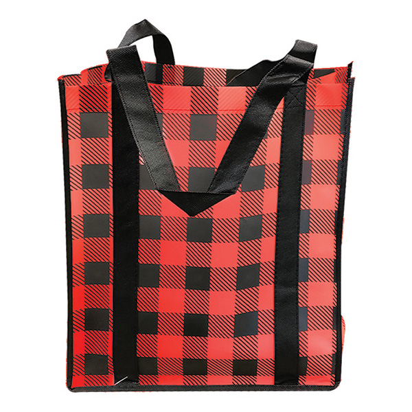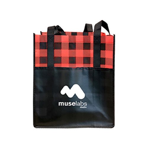80 gram non woven and 35 gram laminated non woven polypropylene. Open main compartment. Front open slash pocket. Two 1.25" W x 50" long handles/shoulder straps. The perfect reusable and fashionable tote for groceries and much more. Price includes one colour, one location imprint.