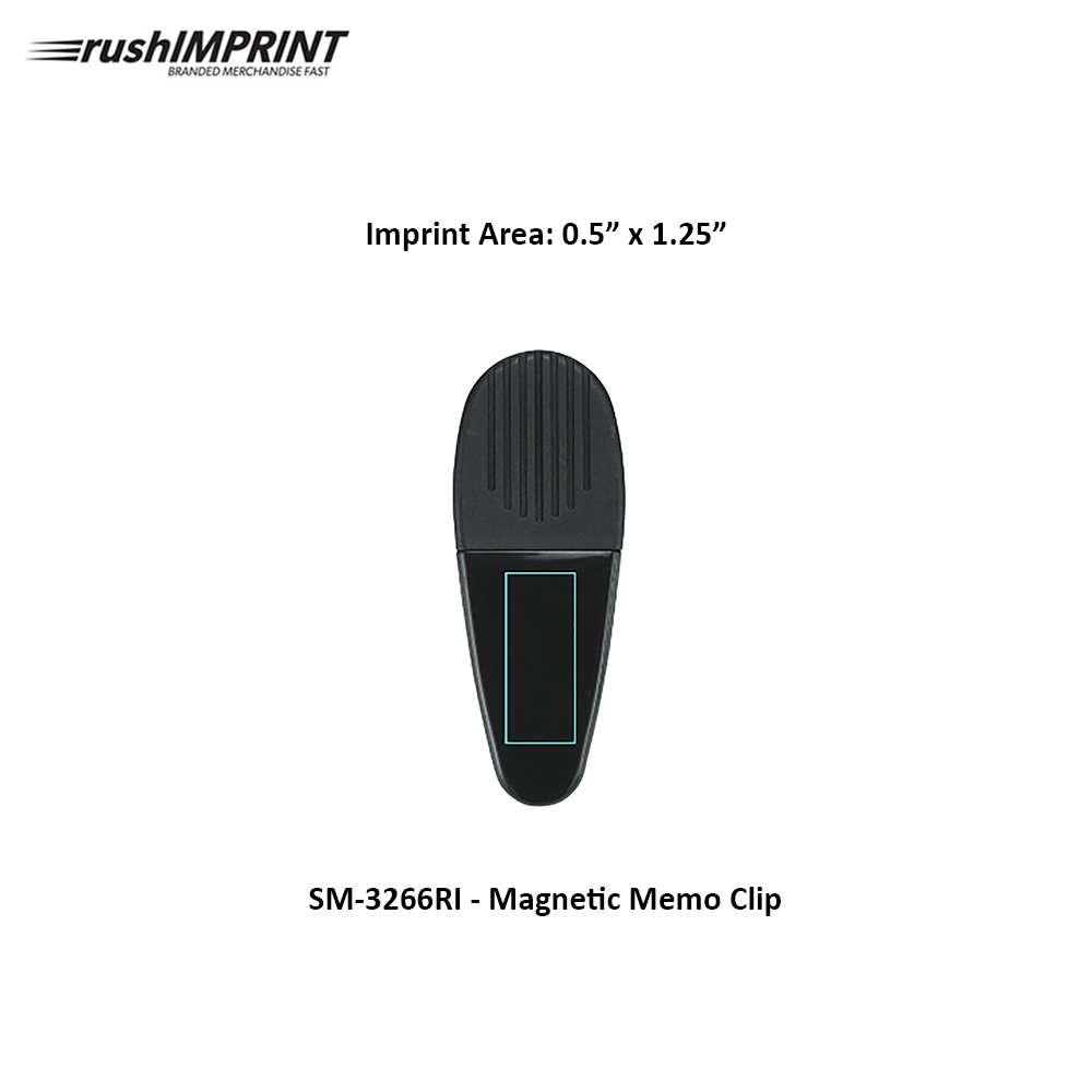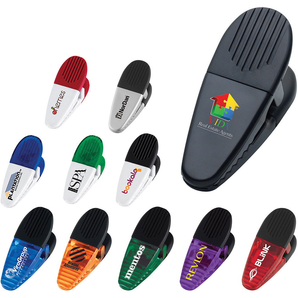 The Magnetic Memo Clip features a heavy-duty spring-loaded hinge with a magnet on the back and a rubberized grip. Material: Polystyrene. Price includes one color, one location imprint.