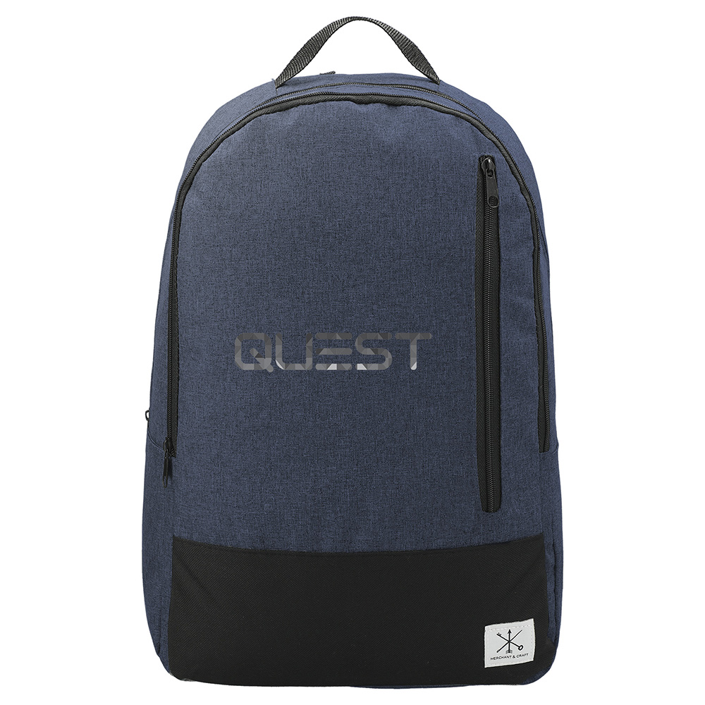 The Merchant & Craft Grayley 15" Computer Backpack is a simple classic for your modern lifestyle. The zippered main compartment contains a 15 inch laptop sleeve, while the vertical front zipper provides easy access to your essentials. Disclaimer: There may be minor variations in color of the actual product due to the nature of the fabric dyes, weaves and printing. Material: 600d Polycanvas. Price includes one color, one location imprint.