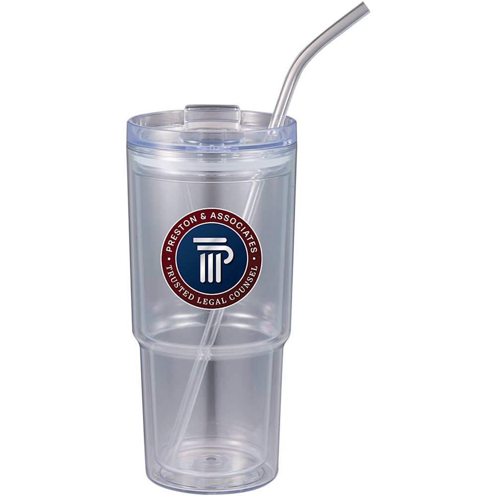 The Mia 24 oz Acrylic Tumbler combines style and sustainability, crafted from 100% recycled acrylic for an eco-conscious choice. Its durable double-wall construction keeps cold beverages refreshing and reduces condensation, making it perfect for everyday use. The tumbler includes a color-matching angled straw and a swivel lid closure for secure transport when not in use. With a slim design that fits standard cup holders, the Mia Tumbler is convenient for on-the-go hydration. Hand wash only. Features: Swivel lid closure - keeps contents secure when straw is not in use. Durable double-wall construction - keeps drinks cool and minimizes condensation. 24oz capacity - ideal for cold beverages. Angled matching straw - designed for easy sipping. Slim design - fits most standard cup holders for on-the-go convenience.