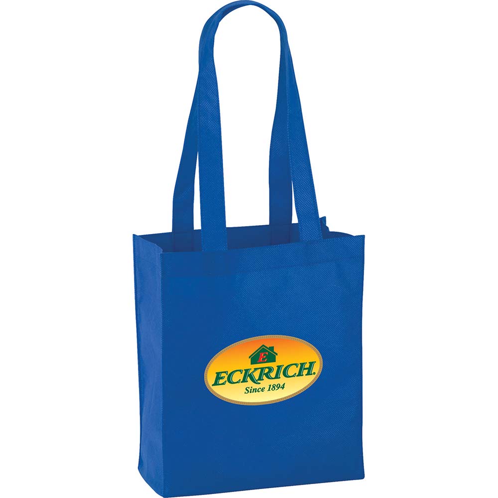 The Mini Elm Non-Woven Tote features an open main compartment with double 24 inch handles. It's also reusable and a great alternative to plastic bags. Disclaimer: Gusset & Handle Decorating is Transfer Only and does not qualify for one day turn. Polypropylene is recyclable with #5 plastics please check with your local municipalities for specific rules and regulations. Material: 80g Non-Woven Polypropylene.