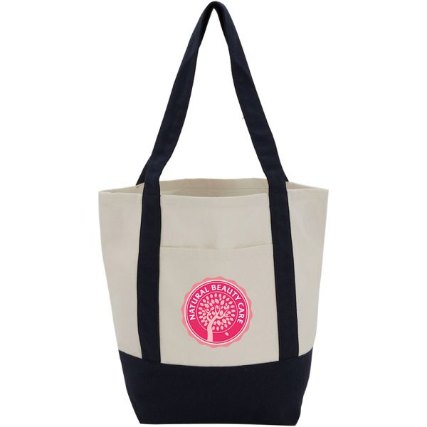 Stay on trend with this Small Cotton Tote! This tote is perfect size to carry your accessories wherever you go and features a front pocket for easy storage. Crafted from 8oz recycled cotton, by choosing this tote, you're making a positive impact on the environment, as one percent of sales are donated to environmental nonprofits through a partnership with 1% For The Planet.. Features. On trend 'mini-tote' design. Front pocket for extra storage. Foldable for easy storage. 8" handle drop. Price includes one colour, one location imprint.