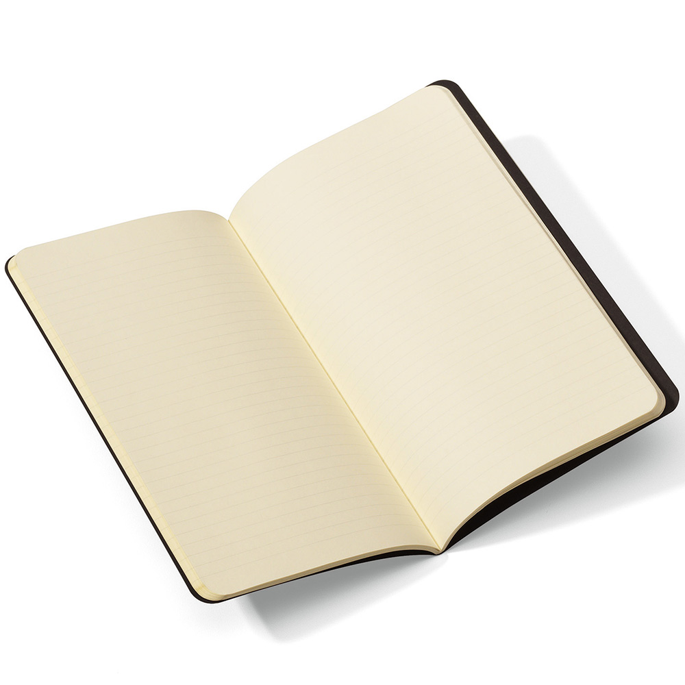 Perfect lightweight journal for day-to-day use with cardboard cover and visible stitching. Ruled, acid-free paper. Last 16 sheets are perforated. Flap pocket on inside back cover. 80 pages (40 sheets). FSC Certified. Journals come packaged with a Moleskine branded ivory paper band and are individually shrink wrapped. Price includes one color, one location imprint.