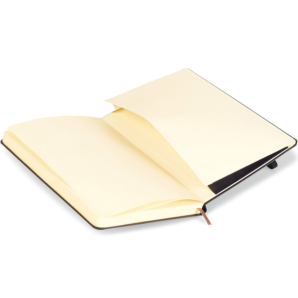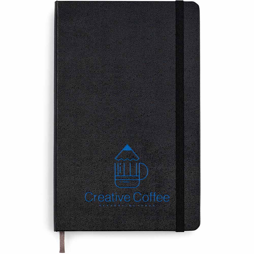 Reliable travel companion perfect for notes, sketches and thoughts. Bound hard cover with rounded corners, bookmark and elastic strap closure. Dotted format. Acid-free paper. Expandable inner pocket. 240 pages (120 sheets). FSC Certified. Notebooks come packaged with a Moleskine branded ivory paper band and are individually shrink wrapped. Add a Custom Band (Item # 405), see link below! Price includes one color, one location imprint.