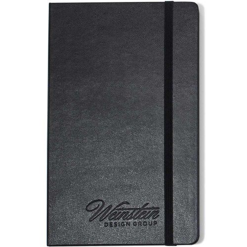 Reliable travel companion perfect for notes, sketches and thoughts. Bound hard cover with rounded corners, bookmark and elastic strap closure. Plain format. Acid-free paper. Expandable inner pocket. 240 pages (120 sheets). FSC Certified. Notebooks come packaged with a Moleskine branded ivory paper band and are individually shrink wrapped. Add a Custom Band (Item # 405), see link below! Price includes debossing.