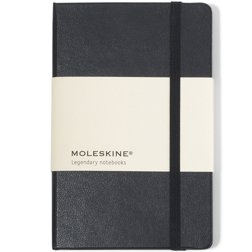 Reliable travel companion perfect for notes, sketches and thoughts. Bound hard cover with rounded corners, bookmark and elastic strap closure. Plain format. Acid-free paper. Expandable inner pocket. 192 pages (96 sheets). FSC Certified. Notebooks come packaged with a Moleskine branded ivory paper band and are individually shrink wrapped. Add a Custom Band (Item # 415), see link below! Price includes debossing.