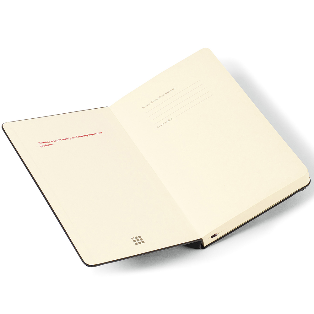 This expanded version of the Classic Notebook has 400 pages and 2 ribbon bookmarks to capture and keep track of more ideas than ever. Double ribbon bookmark. Ruled format. Expandable inner pocket. Ivory-colored 70 g/m² acid-free paper. 400 pages (200 sheets). Notebooks come packaged with a Moleskine branded paper band and are individually shrink wrapped. Add a Custom Band (Item # 505), see link below! Price includes debossing.