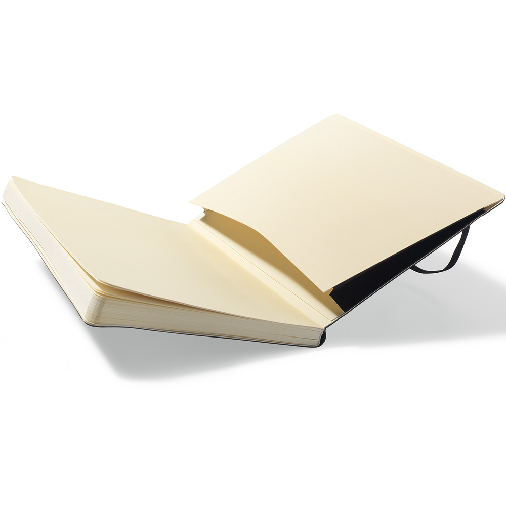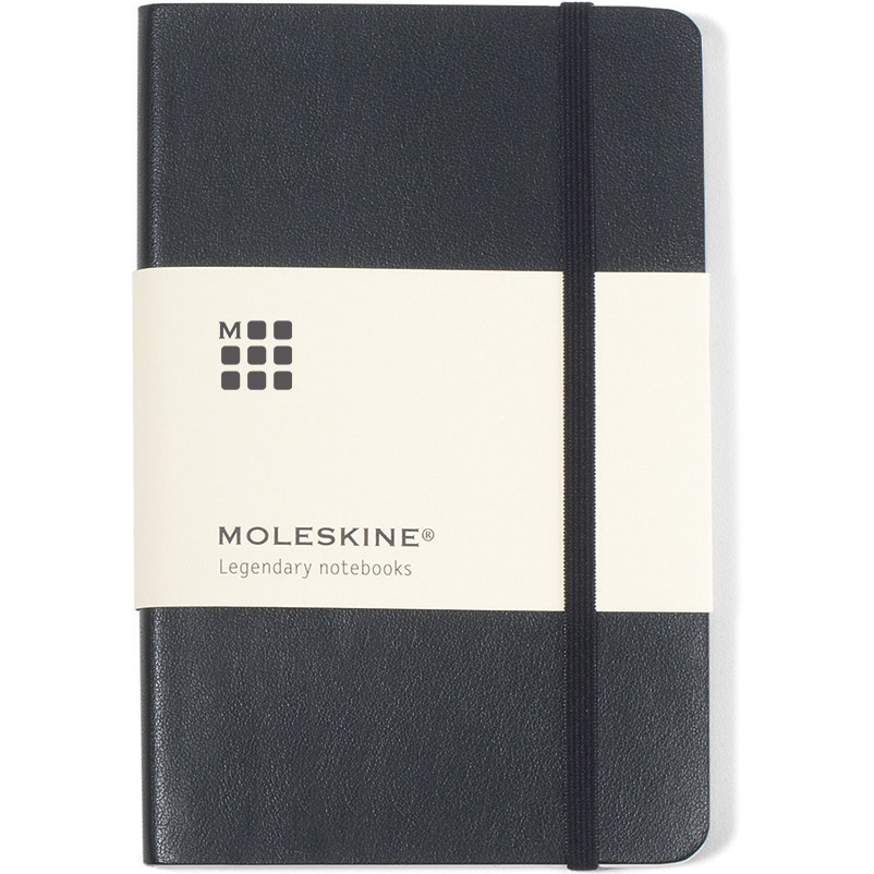 Reliable travel companion perfect for notes, sketches and thoughts. Flexible, soft cover with rounded corners, bookmark and elastic strap closure. Ruled format. Acid-free paper. Expandable inner pocket. 192 pages (96 sheets). FSC Certified. Notebooks come packaged with a Moleskine branded ivory paper band and are individually shrink wrapped.Add a Custom Band (Item # 415), see link below! Price includes debossing.