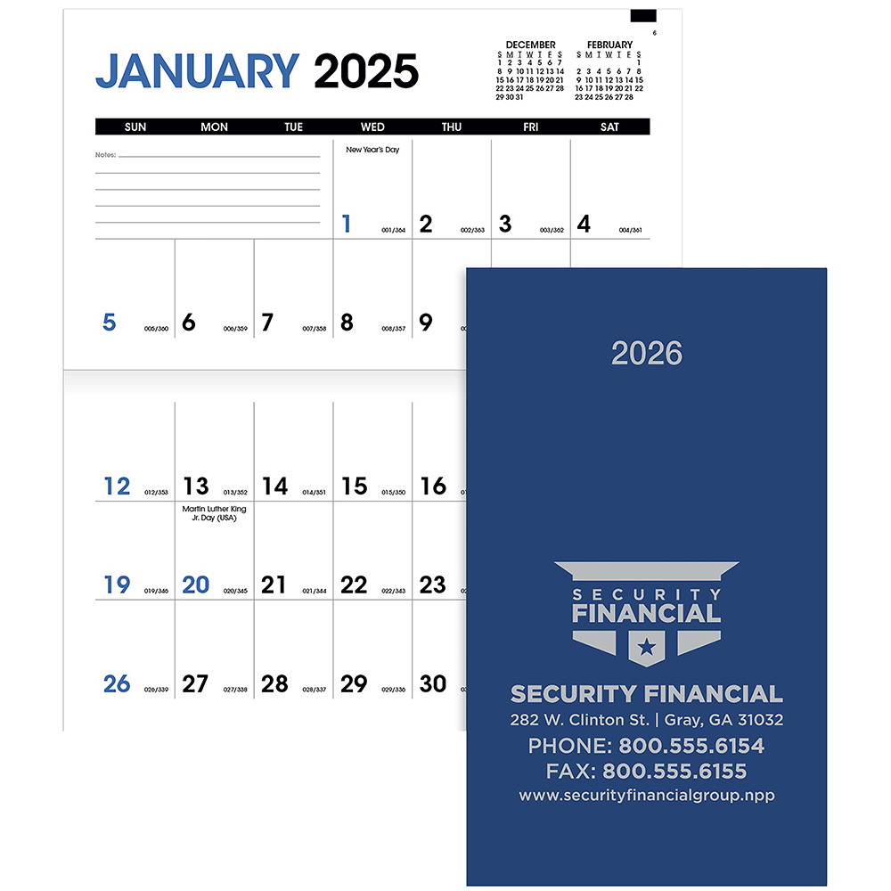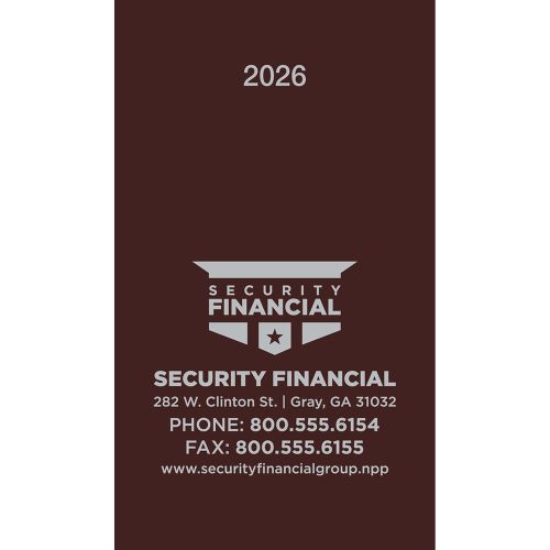 This practical, affordable date book is perfect for large-scale distribution and direct mail. The horizontal date pad format shows a full month on each two-page spread. "2010" is included as standard copy on front cover. Price includes one colour imprint.