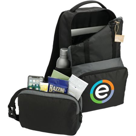 The NBN Trailhead Recycled Lightweight 30L Pack offers top-notch versatility. A removeable zippered waist pack is attached to the front of the bag for a quick grab-and-go accessory. This backpack is made with recycled materials and has a 15" laptop sleeve. The front pocket offers an organizational panel for extra storage. The on-trend grid pattern and interchangeable zipper pulls make this backpack stand out. Two mesh water bottle pockets and padded, adjustable shoulder straps make this backpack perfect for any adventure. Through a partnership with 1% For The Planet, one percent of sales of all EcoSmart products are donated to environmental nonprofits.