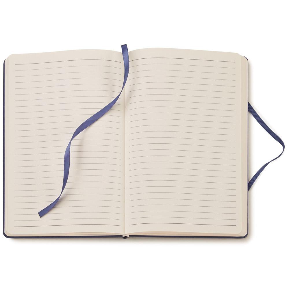 Standard: Bulk. Nothing says luxury like a bit of bling and this notebook speaks glam in volumes! Dressed to impress inside and out with 192 ivory lined pages, a gusseted pocket, a matching ribbon bookmark inside and an elastic closure to match the matte metallic hard cover outside, this Neoskin notebook will certainly make your brand shine. NOTE: When branded, the standard imprint location is centered on the front cover between the spine and the elastic closure. Please specify if you would like the imprint to be centered on the front cover between the spine and the right edge. Price includes debossing.