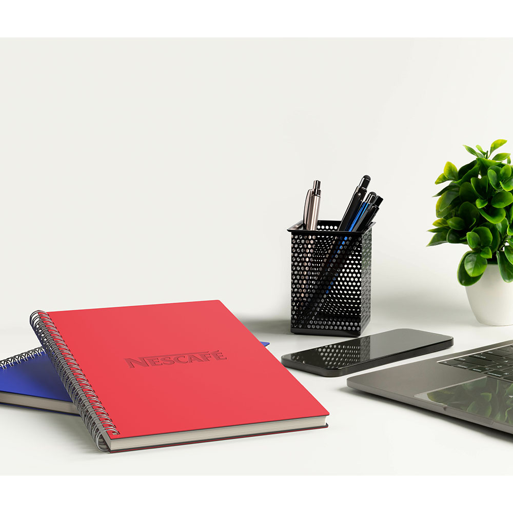 Spark your creativity with our Spiral Neoskin Journal. With a captivating twist of design and available in seven vibrant colors, this journal is a perennial winner in the realm of chic and functional stationery. Unleash your thoughts on 192 perforated FSC certified pages, providing not just a canvas for your ideas, but a commitment to sustainability. The eco-friendly paper ensures that every stroke is a step towards a greener planet, allowing your creativity to bloom guilt-free. Price includes debossing.