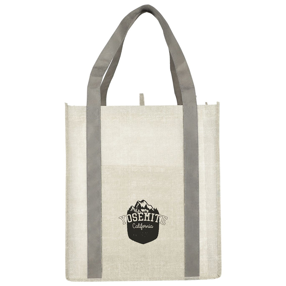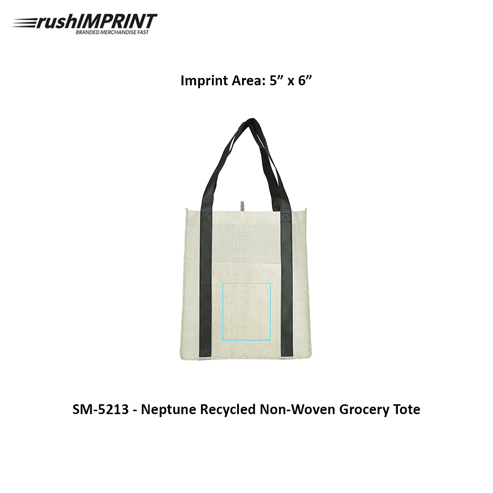 The Neptune Recycled Non-Woven Grocery Tote stands out as the ultimate solution for your grocery needs! With its extra-large design, it effortlessly holds all your items. This innovative and natural-looking approach to non-woven bags ensures a unique style. It also features a front pocket for easy access to additional items. Say goodbye to shopping struggles with the unparalleled Neptune Tote. Material: recycled non-woven 80g polyester. 12" handle drop. Open main compartment. Price includes one colour, one location imprint.