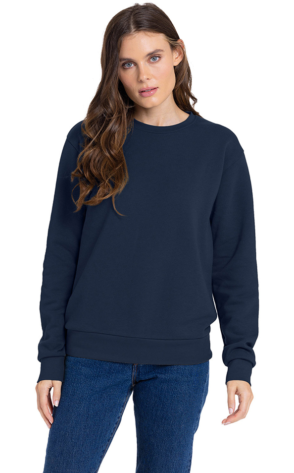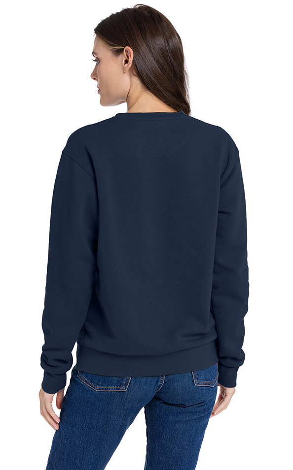 Material: 7.4 oz., 30 singles, 250gsm. 80% combed ring-spun cotton, 20% polyester. 100% cotton face brushed back fleece. Feature: 1x1 baby ribbed neckband, waistband and sleeve cuffs. Self-fabric half-moon locker patch. Set-in sleeves. Side seamed. Tear away label. Next Level Apparel has a recycling program for all fabric waste collected from the cutting process. All fabric scraps are sent to a recycling company that cleans and processes them to be used for cushion filling, rugs, etc. To date, 24.3m pounds of fabric have been recycled. Deco Eligible. Price includes one colour, one location imprint.
