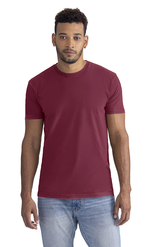 Fabric: 4.6 oz., 32 singles. 100% combed ringspun cotton. Feature: 1X1 baby rib-knit set-in collar. Tear-away label. Vintage soft wash. The soft wash process gives each garment unique character. Variations may occur in each individual item. Uses 75% less chemicals, 50% less water, and 17% less energy to produce than traditional pigment (garment) dye. Next Level Apparel has a recycling program for all fabric waste collected from the cutting process. All fabric scraps are sent to a recycling company that cleans and processes them to be used for cushion filling, rugs, etc. To date, 24.3M pounds of fabric have been recycled. Price includes one colour, one location imprint.