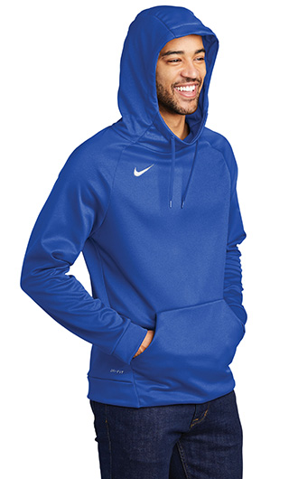 12.3-oz, 100% Therma-FIT polyester with moisture management technology. 3-panel hood with flat contrast drawstrings. Front interior pouch pocket with mesh lining. Self-fabric cuffs and bottom hem. Contrast heat transfer Swoosh logo on right chest. Breathable. Scuba hood. Classic fit.