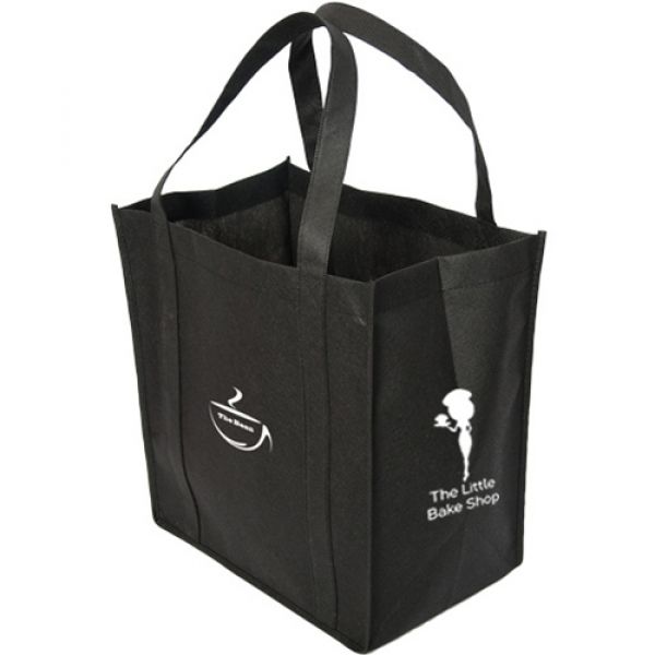 Non woven 90 gram Polypropylene. Two self-material handles/shoulder straps. Removable bottom base. Keep these bags in your trunk to use at the grocery store. A great bag for daily use. Reuse over and over again.