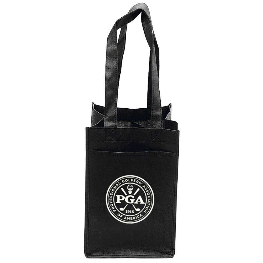 These stylish wine totes fit 4 bottles into their divided sections to prevent bottles clinking or breaking, and folds easily for convenient storage. Featuring 100gsm non-woven material with reinforced stitching and extra piping along major seams to ensure your wine is safe wherever you go. Silkscreen your logo on the front pocket, or imprint the back as well to maximize visibility!