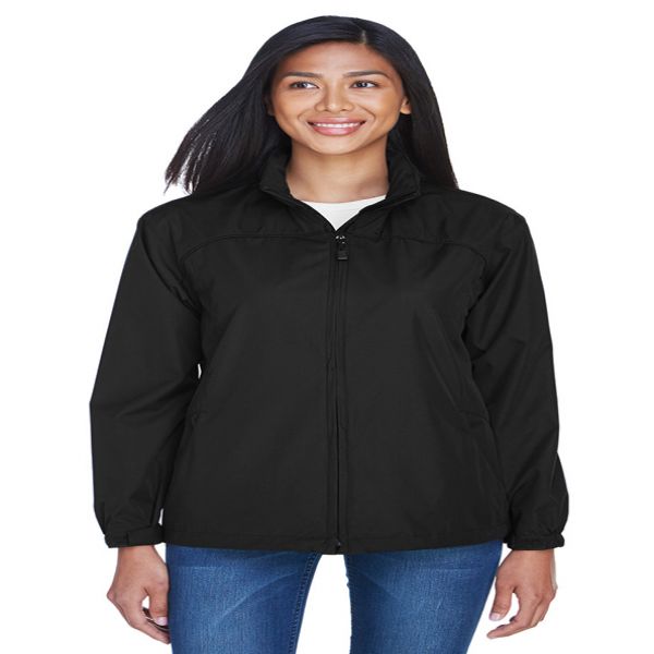 Fabric: 100% 240T polyester, 2.7 oz./yd2/90 gsm w/water resistant finish. LINING: 100% polyester mesh in upper back. Feature: Roll-away hood. Vented back yoke. Adjustable cuffs with tabs. Adjustable shockcord at hood and hem. Piped front yoke.