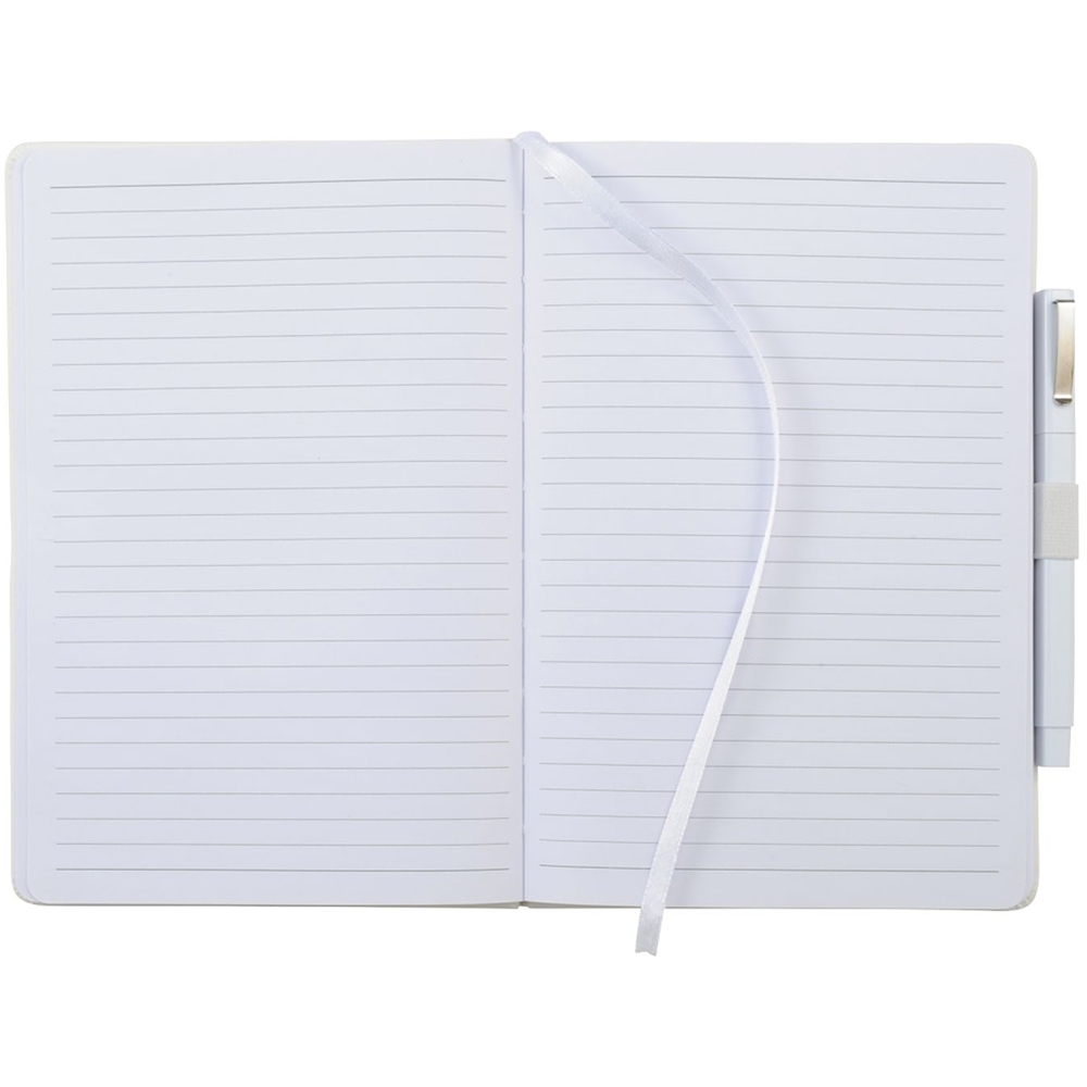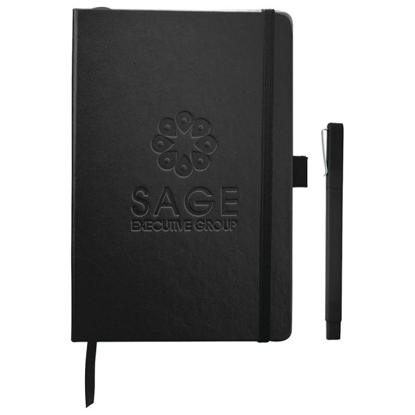 The Nova Bound JournalBook Bundle Set includes a Nova Bound JournalBook (2800-11) and Ambassador Square Ballpoint (6620-31). The JournalBook features a faux, leather-like hard cover with built-in elastic closure. This custom notebook includes a ribbon page marker and expandable accordion pocket. The Nova Bound JournalBook Bundle Set includes 96 sheets of lined white paper. This item cannot be configured online. Contact us to order.. (2800-11) Nova Bound JournalBook. (6620-31)Ambassador Square Ballpoint. Faux, leather-like hard cover. Built-in elastic closure. Ribbon page marker. Expandable accordion pocket. 96 sheets of lined white paper. This item cannot be configured online. Price includes debossing.