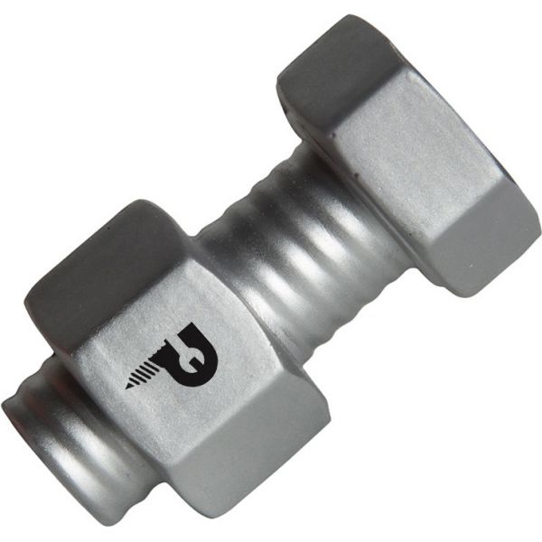 Custom stress ball shaped like a nut and bolt in gray colour. Product dimensions: 0.75"x 3.25"- 0.1 lbs. A minimum order of 150 personalized stress balls. Imprint dimensions: 0.75" x 0.75". Price includes one colour imprint. Free art proof will be emailed with every order within one business day. At least 150 minimum stress balls in 7 days of production. No hidden fees!
