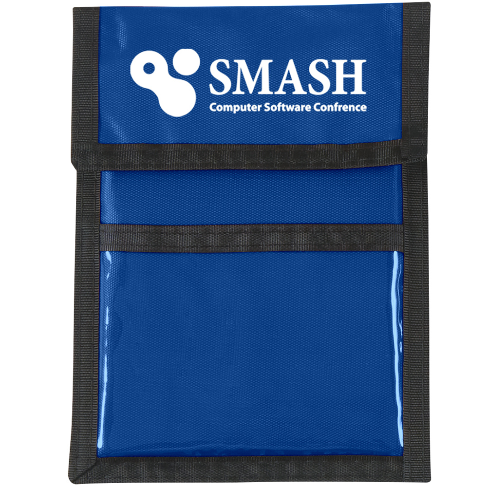 Made Of 420D Nylon. 4" x 3" Clear Plastic Badge Window, Outside Business Card Pocket And 2 Pen Holders. Inside Zippered Compartment And Breakaway Neck Cord. Price includes one colour, one location imprint.