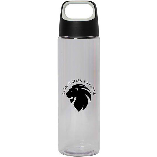 Tritan.Clear single walled bottle. Your choice of coloured PP screw-on two-toned lid. Lid can also be used to carry the bottle. Holds up to 700 ml. (23.5 oz.). Wide mouth opening to accommodate ice cubes. BPA free and FDA compliant. Dishwasher safe (bottle only). For use with cold beverages only. Price includes one colour, one location imprint.