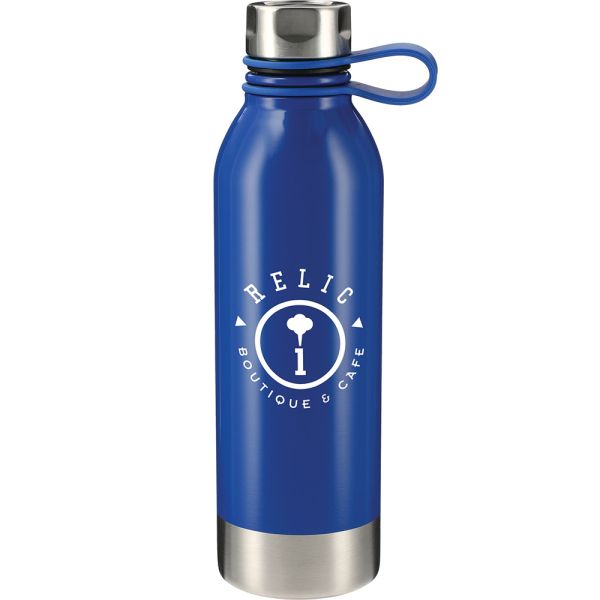 The Perth 25oz Stainless Sports Bottle features single-wall construction and stainless steel screw-on lid with comfort handling loop. Hand wash only and follow any included care guidelines. Material: Stainless Steel. Price includes one color, one location imprint.