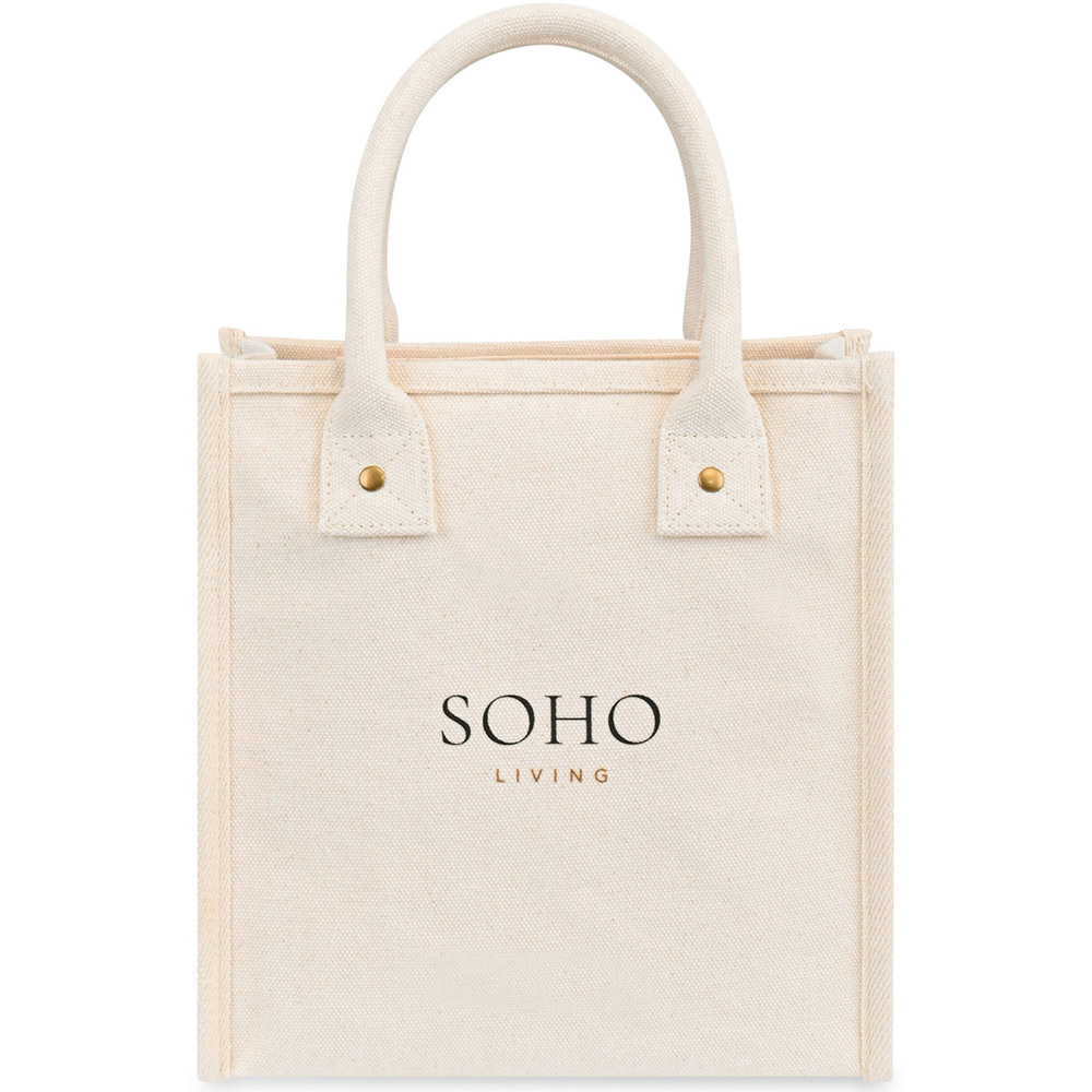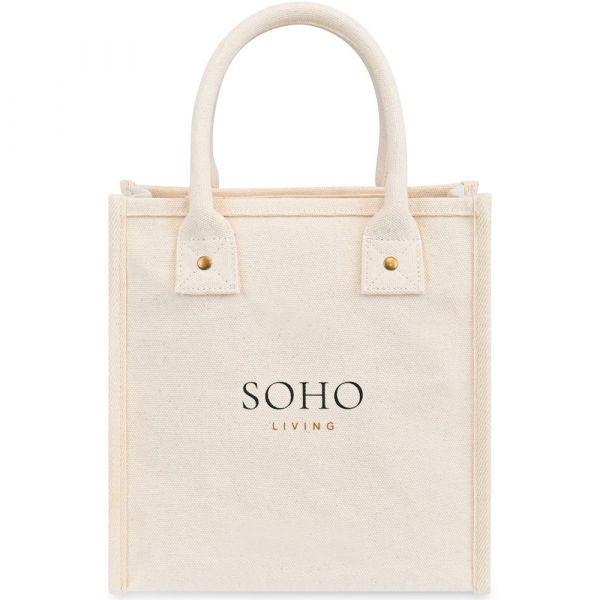Materials:16 oz cotton. This stylish canvas tote is the perfect week to weekend carryall. This classic, all-purpose tote is made one of a kind by you with an addition of a logo or inspirational words. Made from a structured cotton canvas, the spacious design stays upright to stow everything in style. The comfortable rolled padded handles make it simple to carry by hand or slide over your forearm. Antique Brass Rivet Details. Interior Pocket. The Petite Tote offers an ideal bundle opportunity. Eco-bow box #977 fits perfectly inside to create and present a memorable gift. Price includes one colour, one location imprint.