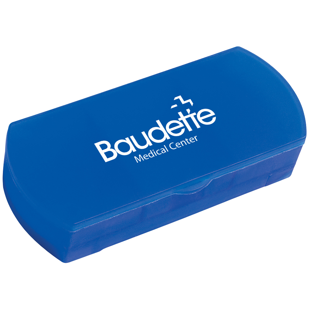 8 Bandages. 3 Separate Compartments. Bottom Slides Open To Access Bandages. Bandages Are Latex Free. Meets FDA Requirements.