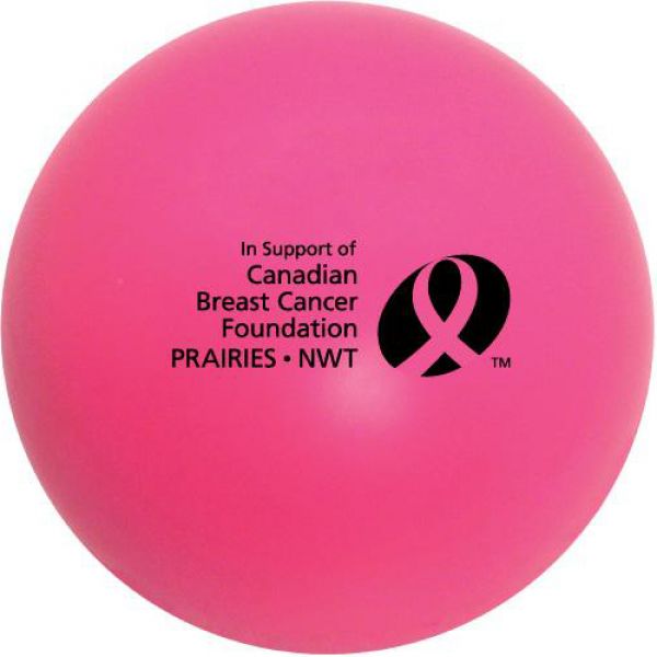 Custom stress balls - 2.75"x 2.75"- 0.1 lbs in pink colour. Round stress balls with 1.25" x 1.25" imprint dimensions for your brand. Promote your brand with this squeezable foam made of polyurethane. Price includes one colour imprint. Free art proof will be emailed with every order within one business day. A minimum of 150 personalized stress balls in 7 colours. No duties, no fees!