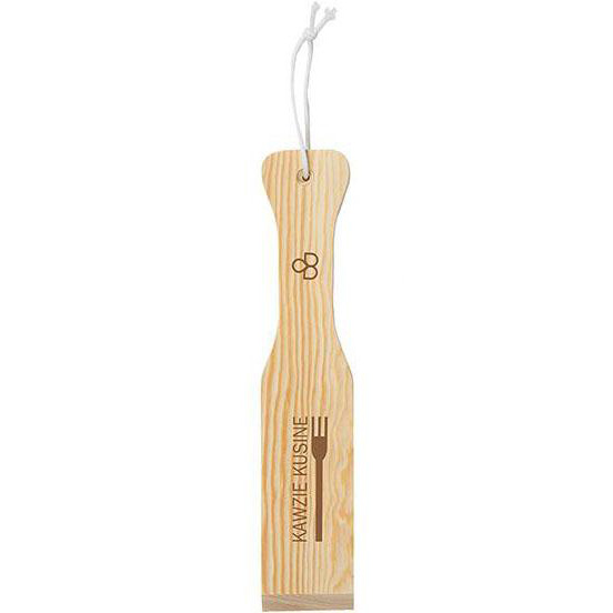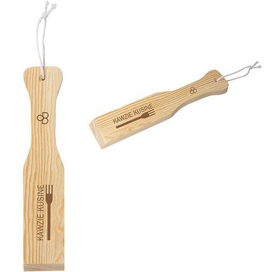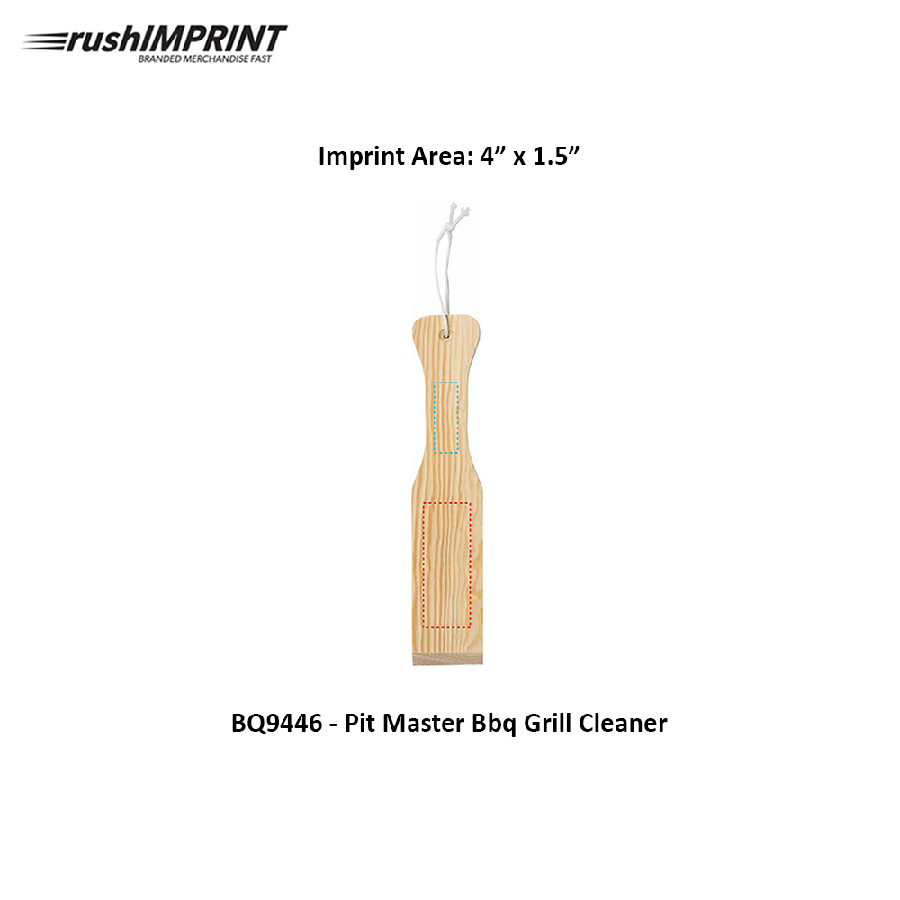 Pinewood. Use to clean the grates of your BBQ. A great alternative to wire brushes. No more dangerous risk of bristles in your food. Hole on one end for hanging with Cotton string. Customizable to your BBQ. Contours to your own grill with use. Washable. Instructions included on foam pouch. Price includes one colour, one location imprint.