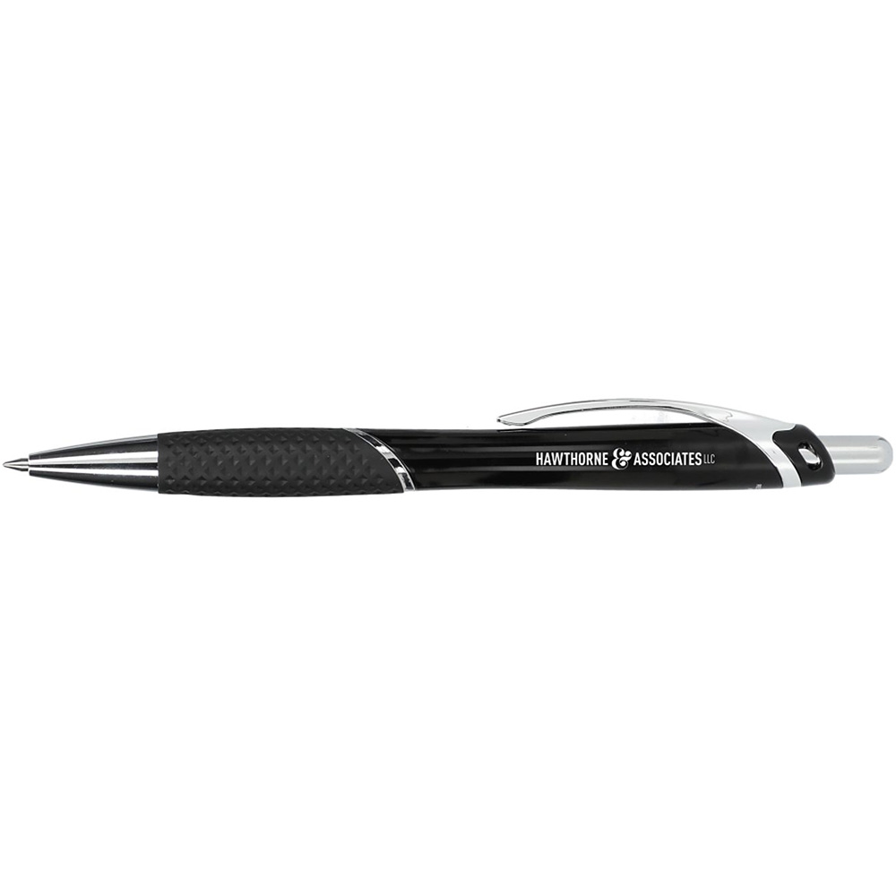 The Pivot Recycled ABS Gel Pen features a 100% RABS barrel and rubberized grip for comfort. Smooth black gel ink with 200 meters of writing length. Click action design and 0.5mm tip. Through a partnership with 1% For The Planet, one percent of sales of all EcoSmart products are donated to environmental nonprofits. 100% recycled ABS barrel. Black gel ink. 200M writing length. 0.5mm tip. Price includes one colour, one location imprint.