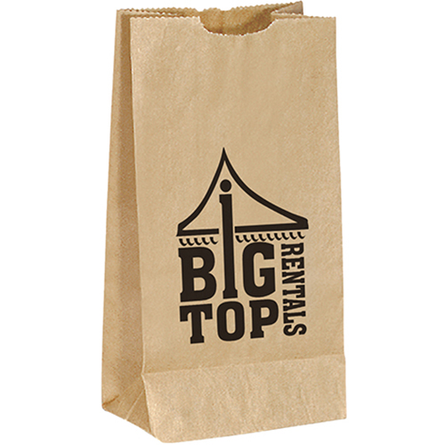 This functional unlined paper bag has a serrated cut top, and side and bottom gussets.