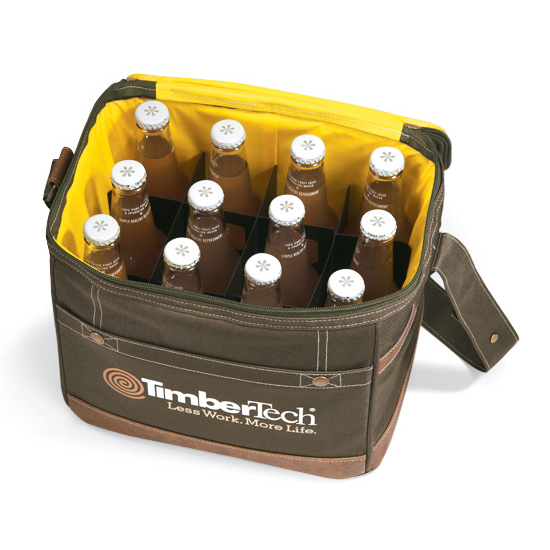 Beach, backyard or board retreat, this rugged cooler with removable, collapsible 12-bottle divider keeps everyone refreshed. Adjustable shoulder strap features metal bottle opener. Top padded carry handle. 12 bottle capacity or 18 can capacity. Front pocket for storage. Heat sealed interior. PEVA lining (non PVC). 600d polyester material. Price includes 1 colour imprint, 1 location.