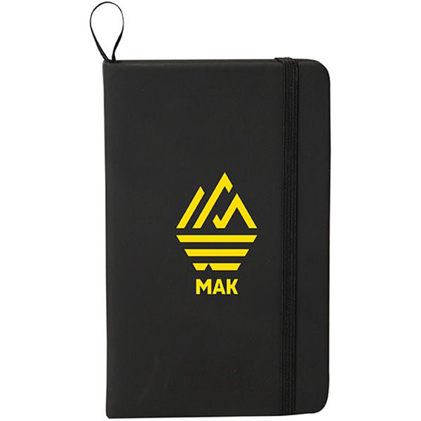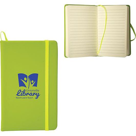 Hard PU Cardboard cover. Matching coloured elastic band closure and ribbon page marker. 96 sheets of 70 GSM lined ivory paper. Pen not included. Price includes one colour, one location imprint.