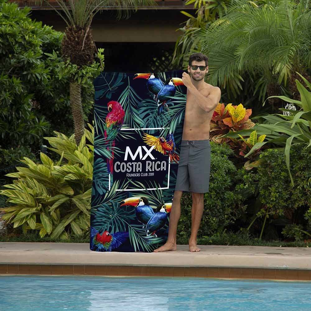 Feature your brand in a unique way on this fun, standard-size beach towel. This sublimated towel is sure to create a buzz, enhancing your brand. Perfect for the beach, pool or any outdoor event! Make the most of one of the largest advertising space in the promotional industry on a low budget.