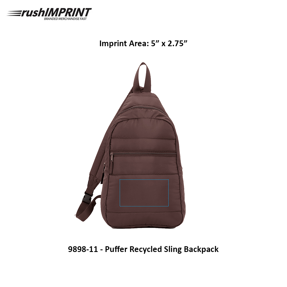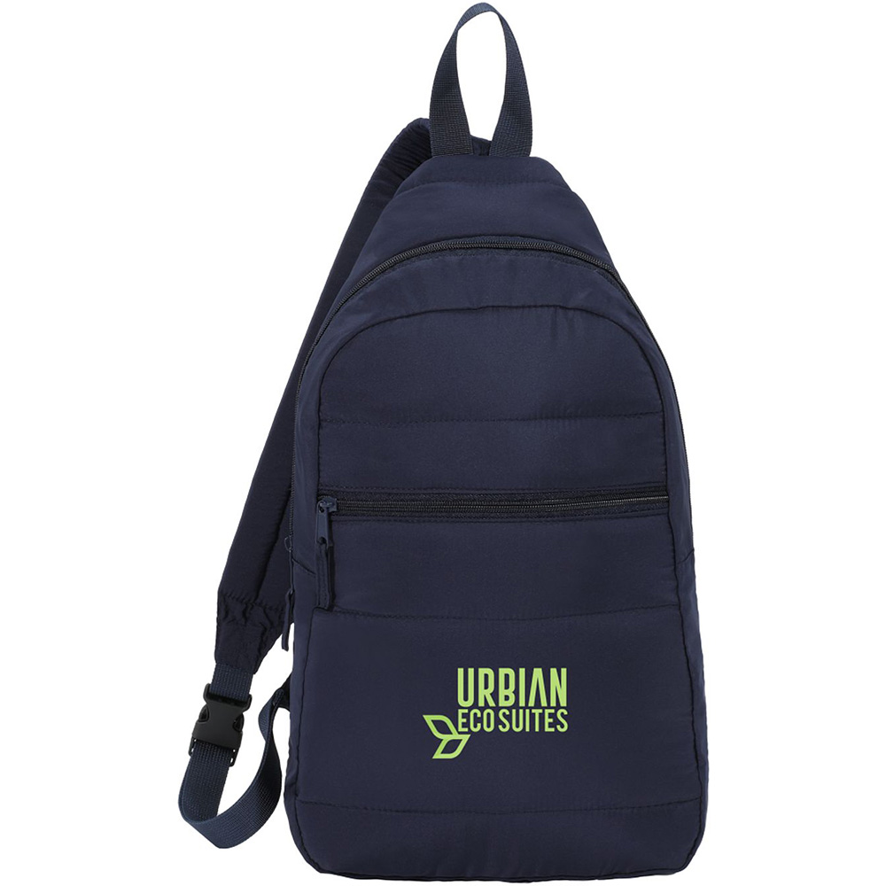 The Puffer Sling is the perfect size to carry your daily essentials. Crafted from quilted rPET, this sling has a super soft, puffy exterior. Neutral colors in a matte finish adds a touch of luxury, and the ultra-lightweight design feels like you're carrying a cloud. Features a zippered main compartment with an interior pocket and a zippered front pocket for extra storage Price includes full colour imprint.