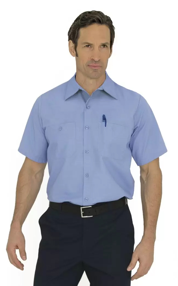 7.1-oz, 65/35 polyester/cotton poplin. Chest pocket. Lined collar with sewn-in stays. Industrial laundry. Light soil wash. Home wash. Touchtex technology. Durable press.
