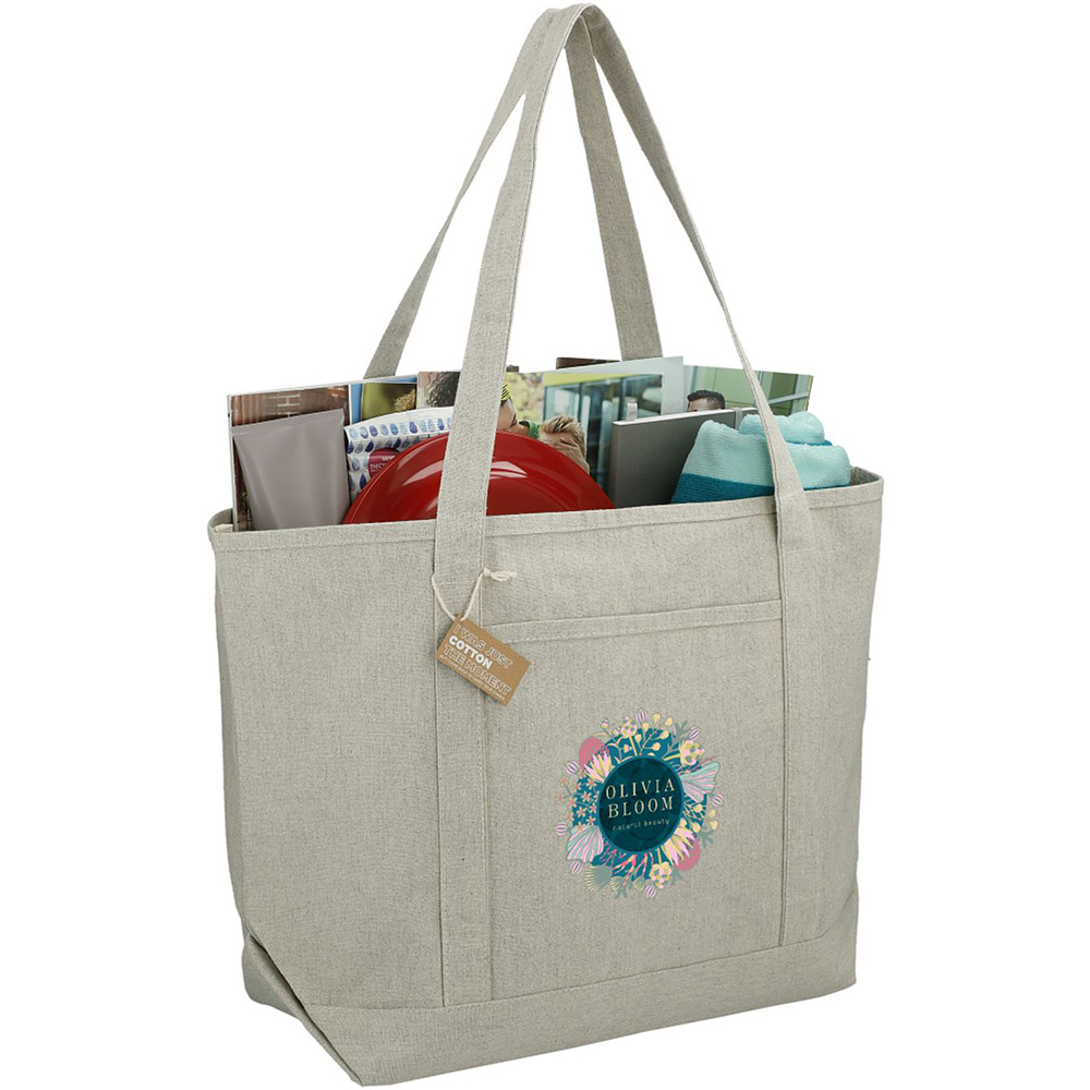 The Repose 10oz Recycled Cotton Tote is made from pre-consumer recycled cotton. It features an open main compartment, slash front pocket and double handles. Through a partnership with 1% For The Planet, one percent of sales of all EcoSmart products are donated to environmental nonprofits.