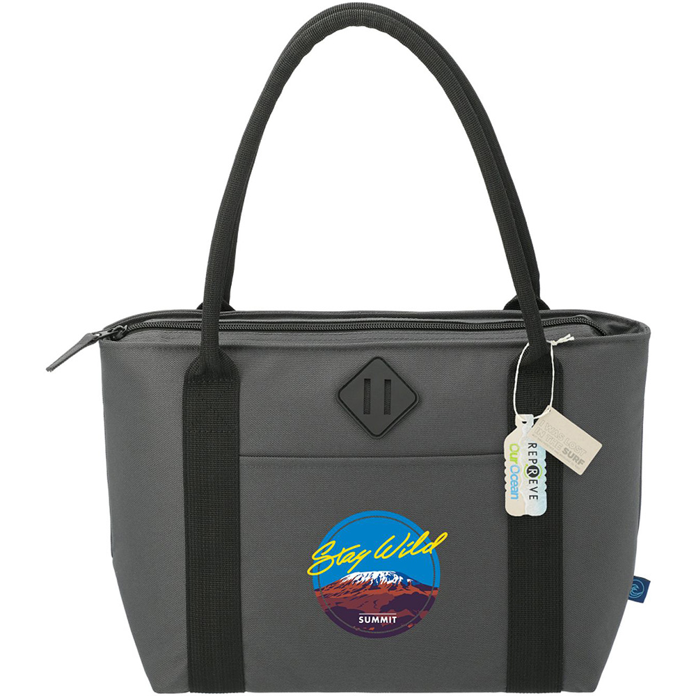 Saving the ocean one bag at a time! The Repreve Ocean 12 Can Tote Cooler is made from recycled ocean plastic and features a grey PEVA lining. This trendy tote makes it easy to carry all your items in style! Through a partnership with 1% For The Planet, one percent of sales of this and all EcoSmart products are donated to environmental nonprofits. Material: REPREVE recycled 600d polyester. Price includes one colour, one location imprint.