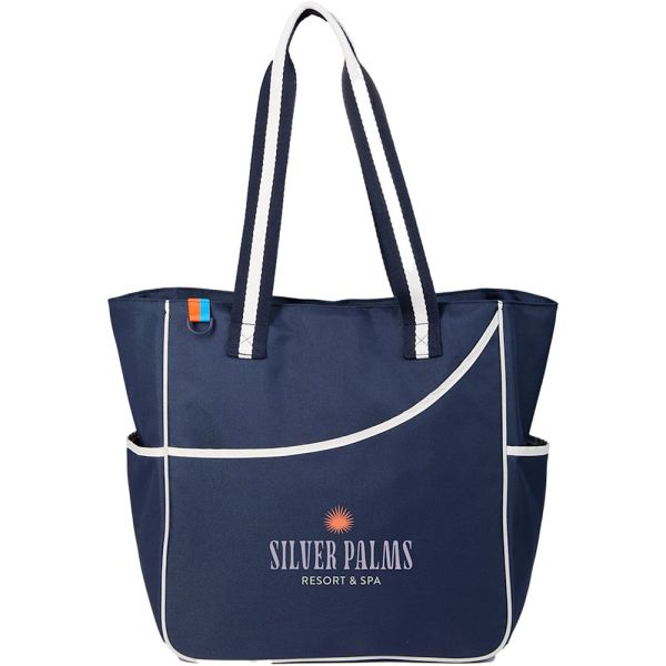 The Retro Sport Multipurpose Tote combines on-trend style with versatile functionality, making it the perfect over-the-shoulder bag for both sports and everyday use. This tote features a unique curved front pocket designed to securely hold your pickleball paddles or other essentials, while the snap-close main compartment and two side hydration pockets keep your belongings organized and accessible. Accented with striped cotton webbing and a D-ring for added convenience, this bag offers both style and practicality. Made from rPET material. One percent of sales of this tote supports environmental nonprofits through a partnership with 1% For The Planet. Features: Curved front pocket - ideal for securely holding pickleball paddles or everyday essentials. Snap closure main compartment - provides secure storage for larger items. Two side hydration pockets - easy access to water bottles on the go, Striped cotton webbing - adds a stylish, retro-inspired detail. D-ring attachment - convenient for clipping additional items.