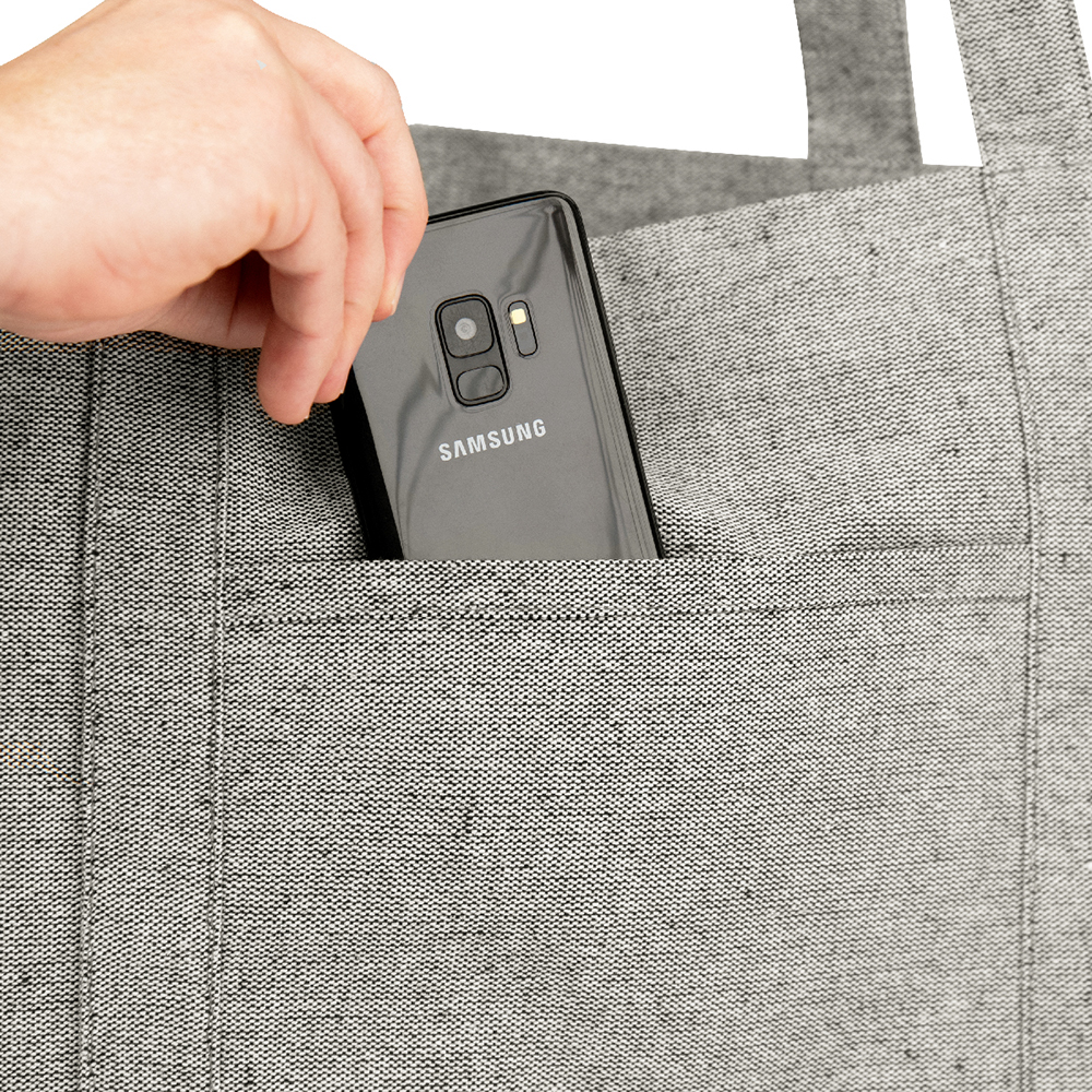 Made Of Combo 10 Oz. 80% Recycled Cotton Canvas And 20% Recycled Polyester. Front Pocket. 21 1/2" Handles. Spot Clean/Air Dry. Price includes one colour, one location imprint.