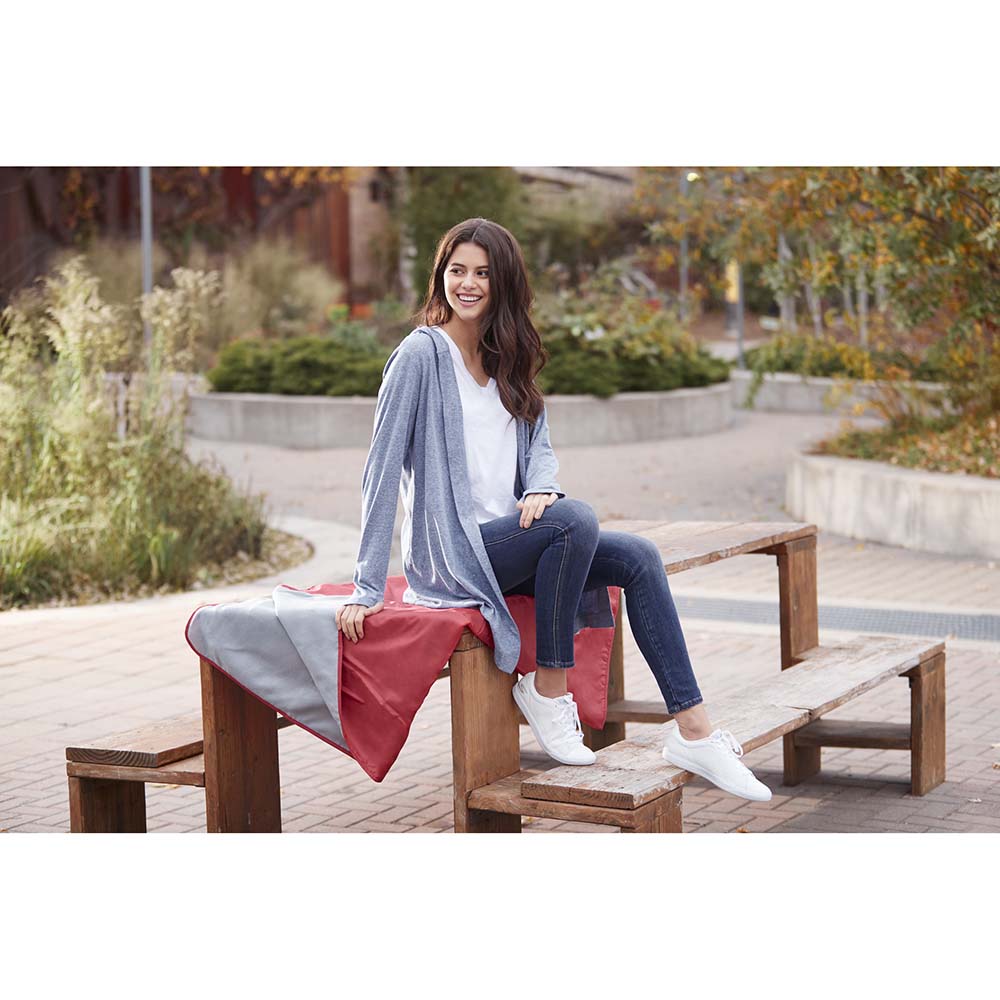 The Roll up Picnic Blanket with Carrying Strap has a cozy fleece lined interior with a waterproof exterior- perfect for any outdoor activities! The blanket unfolds to 48" x 57" and folds to 12" x 7". Also comes with a carrying strap for easy transportation. Material: Polyester. Price includes one color, one location imprint.