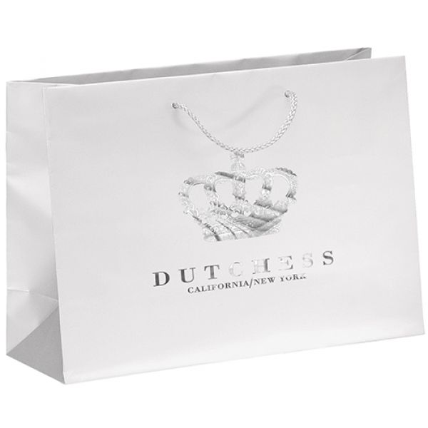 Achieve a refined high-end look for your gift packaging, thanks to the subtle finish on our 157 GSM premium-weight matte-laminated bags. Includes matching macramé handles, reinforced fold-over top, and cardboard bottom insert. Price includes foil stamp.