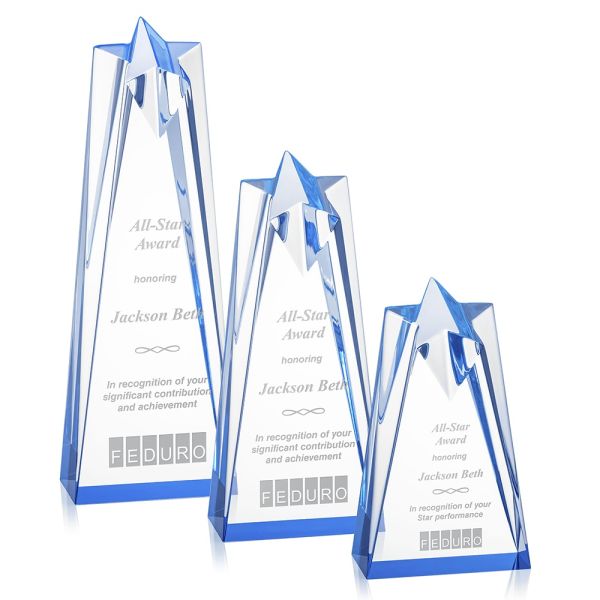 The stunning Rosina award presents excellence with a freestanding star peak that simmers down each vertice to its base. A monument to be observed. Price includes laser engraving.