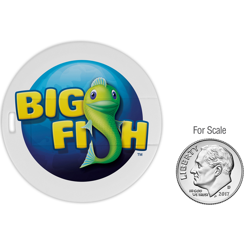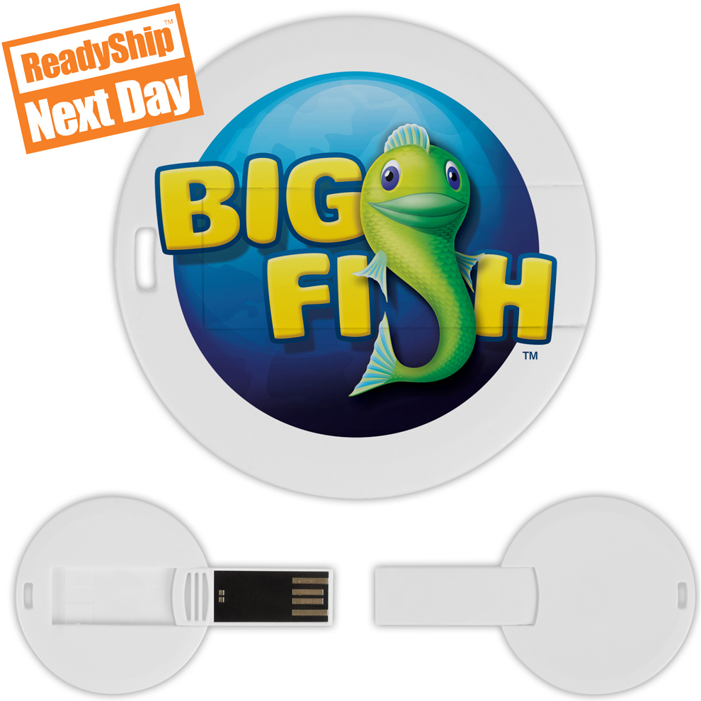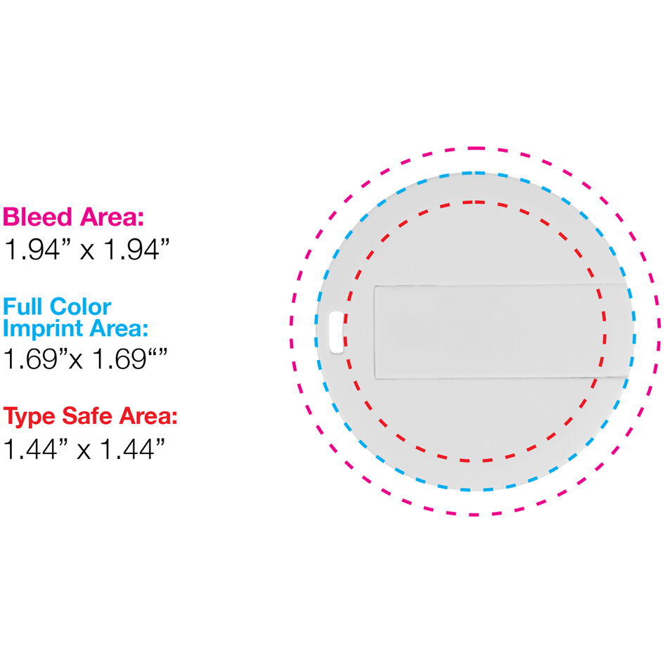 Thin and lightweight like the other Laguna USB styles, the Round Laguna USB Flash Drive conveniently attaches to a keychain or wallet. Functional, fun, and can be decorated on both sides with the full-color process imprint option. Material: Plastic. Price includes one color, one location imprint.
