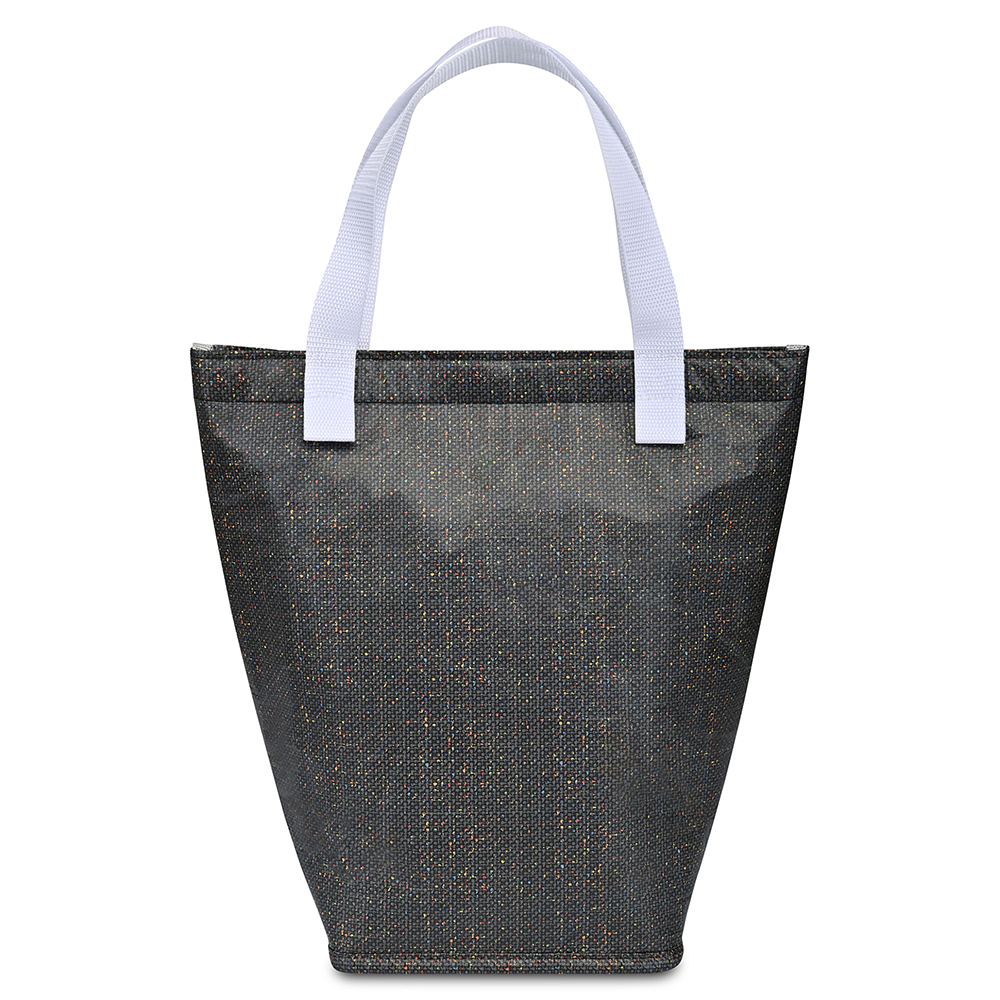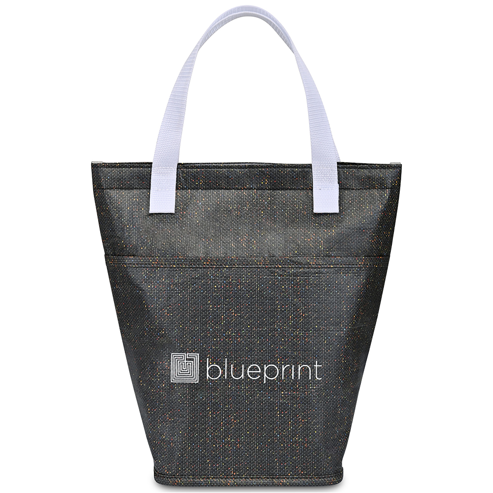 The Sami Cooler Collection features recycled laminated nonwoven material with a fashionably subtle fleck detail. Wipeable and durable PEVA lining. Hook and loop closure. Front slash pocket. Dual tote-style handles for easy carrying. One color screen print only. Holds 10 cans. PVC Free Product. Price includes one colour, one location imprint.