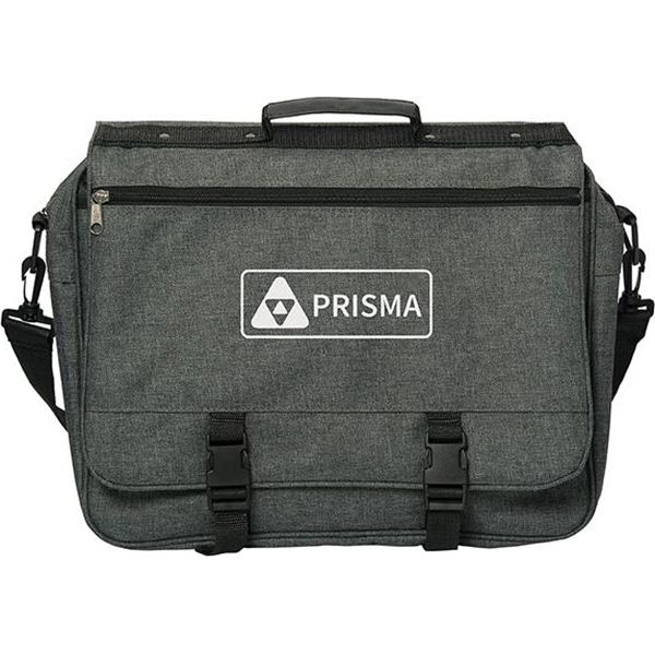 600D Polyester. Inside pen/pencil and calculator holders. Built-in plastic key tag, change pocket, and umbrella loops. Zippered front pocket (13.5" W x 8" H). Divided back pocket. Price includes one colour, one location imprint.