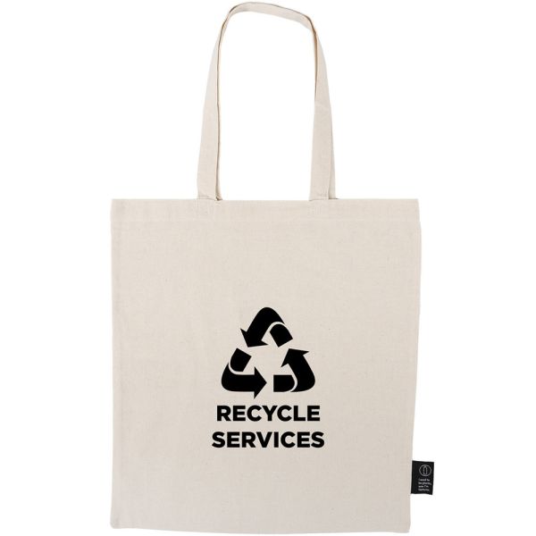 The Savannah Cycle 6 ounce cotton tote is an eco-chic essential for conscious living. Crafted from a blend of 70% recycled cotton and 30% recycled plastic, this tote redefines sustainable style. It seamlessly combines fashion with environmental responsibility. This tote is a practical choice for those who appreciate durability and earth-friendly choices. Embrace sustainable fashion with the Savannah Cycle, where style meets a commitment to the planet. 6 OZ cotton tote made from a blend of 70% recycled cotton and 30% recycled plastic.. Heathered material pattern for an eco-chic look. Recycled material sewing label on bottom corner. Perfect for every day use for books, office essentials, and daily accessories. Complies with Global Recycled Standards.
